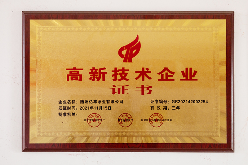 隨州億豐泵業(yè)有限公司位于隨州市曾都經(jīng)濟開發(fā)區(qū),建筑面積15000平方米,公司現(xiàn)有大學(xué)文憑以上的35人、技術(shù)人員25人(高級職稱5人、中級職稱以上27人)。公司自成立以來先后獲得高新技術(shù)企業(yè)、“專精特新”小巨人企業(yè)、隱形冠軍、著名商標等一系列榮譽。